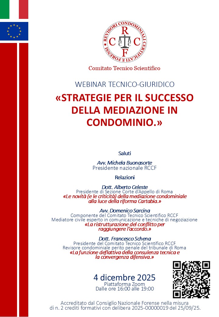 Componente del Comitato Tecnico Scientifico RCCF, Mediatore civile esperto in comunicazione e tecniche di negoziazione